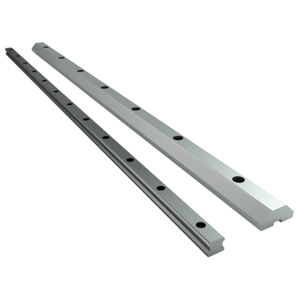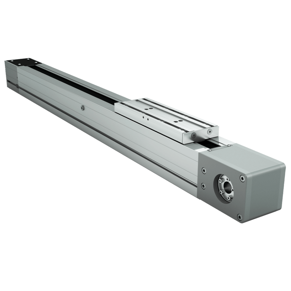 Linear axis with belt drive. Rolling on trapezoidal, round or recirculating ball guides.